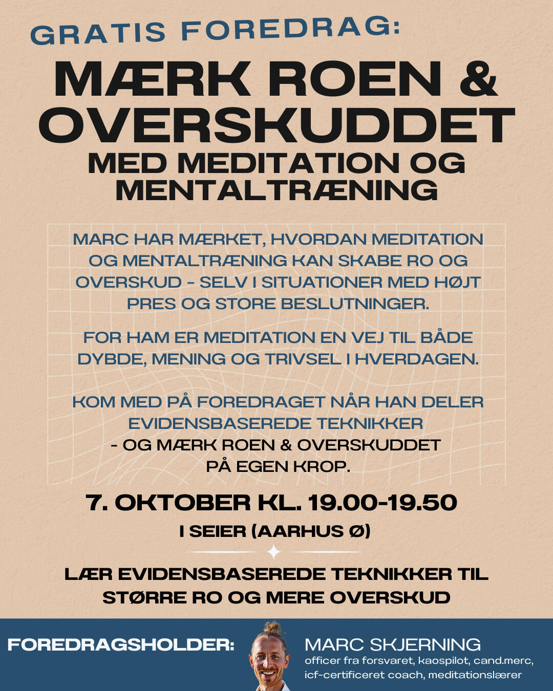 "Jeg kan huske da jeg skulle lære at meditere. Jeg havde studeret alle beviserne på for hvorfor det gav mening, men jeg syntes stadigvæk det var lidt mystisk. Der var ingen af mine venner der mediterede. Det føltes lidt som en undergrundsting, var svært tilgængeligt og kostede +4000 DKK.MEN jeg er så taknemmelig for at jeg tog springet. Meditation har ændret mig og mit liv.Og derfor har jeg lavet dette lille foredrag som en simpel og tryg introduktion til at meditere. Helt uden mystik og med simple øvelser som giver succesoplevelser fra start.Jeg håber på at se dig :-)